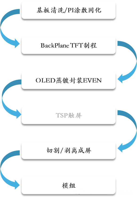 लचीली AMOLED निर्माण प्रक्रिया में सब्सट्रेट सफाई/पीआई कोटिंग, बैकप्लेन टीएफटी तैयारी, ओएलईडी वाष्पीकरण और एनकैप्सुलेशन, टच मॉड्यूल एकीकरण, लेजर लिफ्ट-ऑफ और मॉड्यूल असेंबली जैसे प्रमुख चरण शामिल हैं।