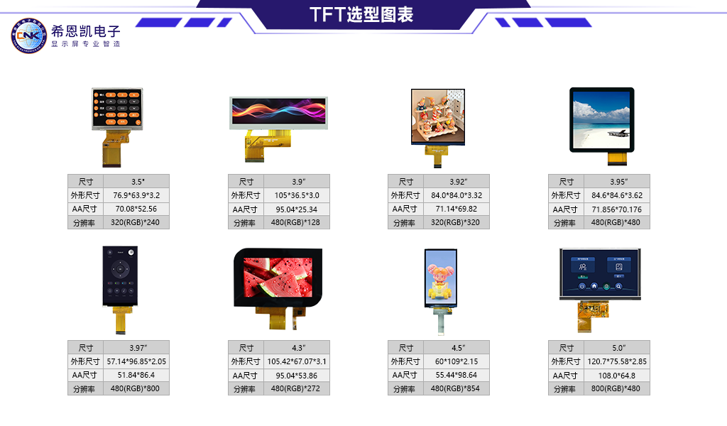 रंगीन स्क्रीन टीएफटी मॉड्यूल के पहलू में, कंपनी ने ग्लास कटिंग, पोलराइज़र अटैचमेंट से लेकर ड्राइवर आईसी बॉन्डिंग और बैकलाइट असेंबली तक पूरी विनिर्माण प्रक्रिया में महारत हासिल की है। इसके उत्पाद विभिन्न ड्राइविंग विधियों जैसे आरजीबी इंटरफ़ेस, एमसीयू इंटरफ़ेस और एसपीआई इंटरफ़ेस का समर्थन करते हैं, और लचीले ढंग से विभिन्न मुख्य नियंत्रण प्लेटफार्मों के लिए अनुकूल हो सकते हैं।